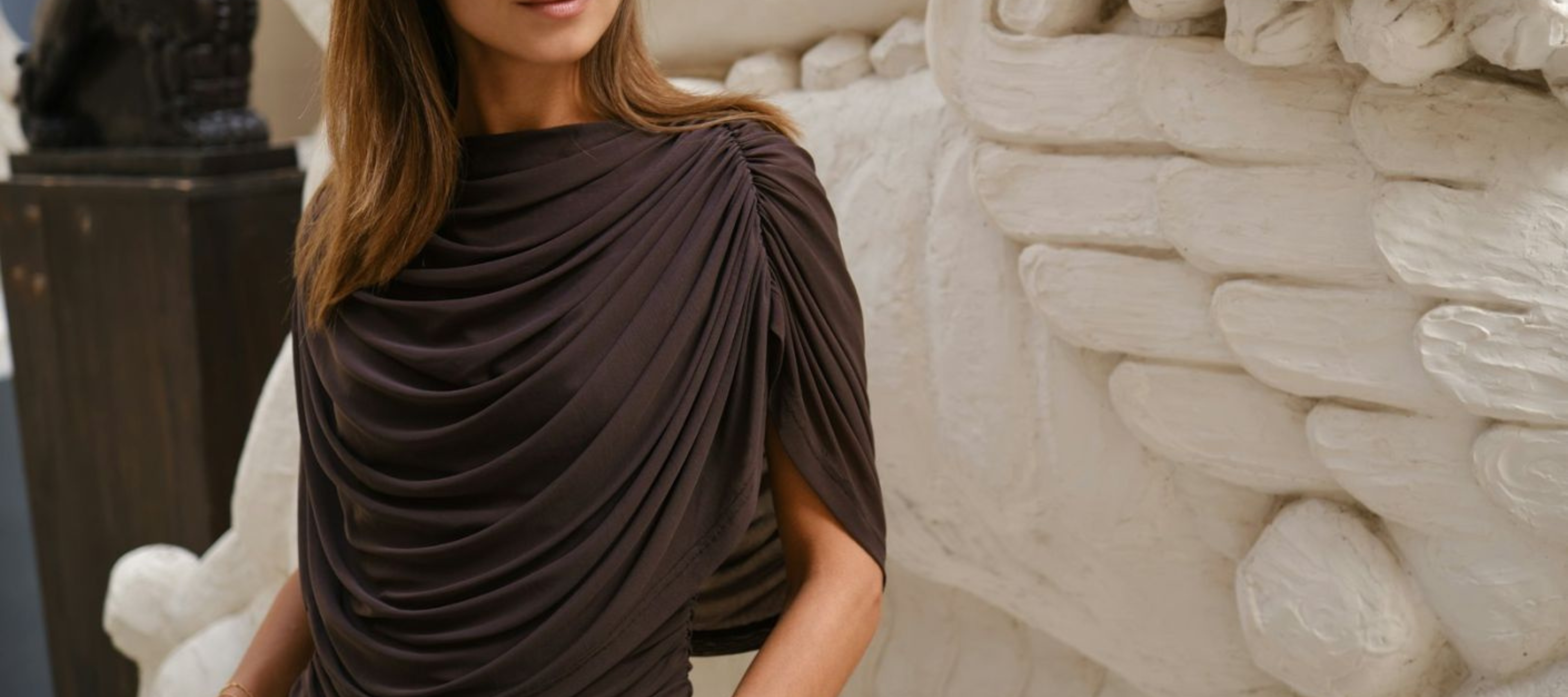Cottuna Drapy Mesh Top (Brown)
